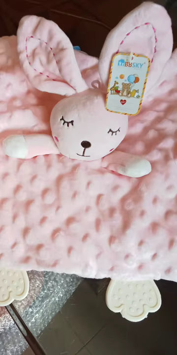 Ten słodki komplet to połączenie praktycznego kocyka i mięciutkiej maskotki, która szybko stanie się najlepszym przyjacielem maluszka. Struktura materiału z wypustkami stymuluje zmysł dotyku, a pastelowy kolor wprowadza spokój i ciepło. Idealny do wózka, łóżeczka lub fotelika samochodowego.