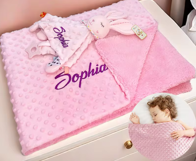 Mięciutki kocyk i uroczy pluszak z możliwością haftu z imieniem dziecka to połączenie praktyczności i sentymentalnej wartości. Każdy detal dopracowany z myślą o bezpieczeństwie najmłodszych.